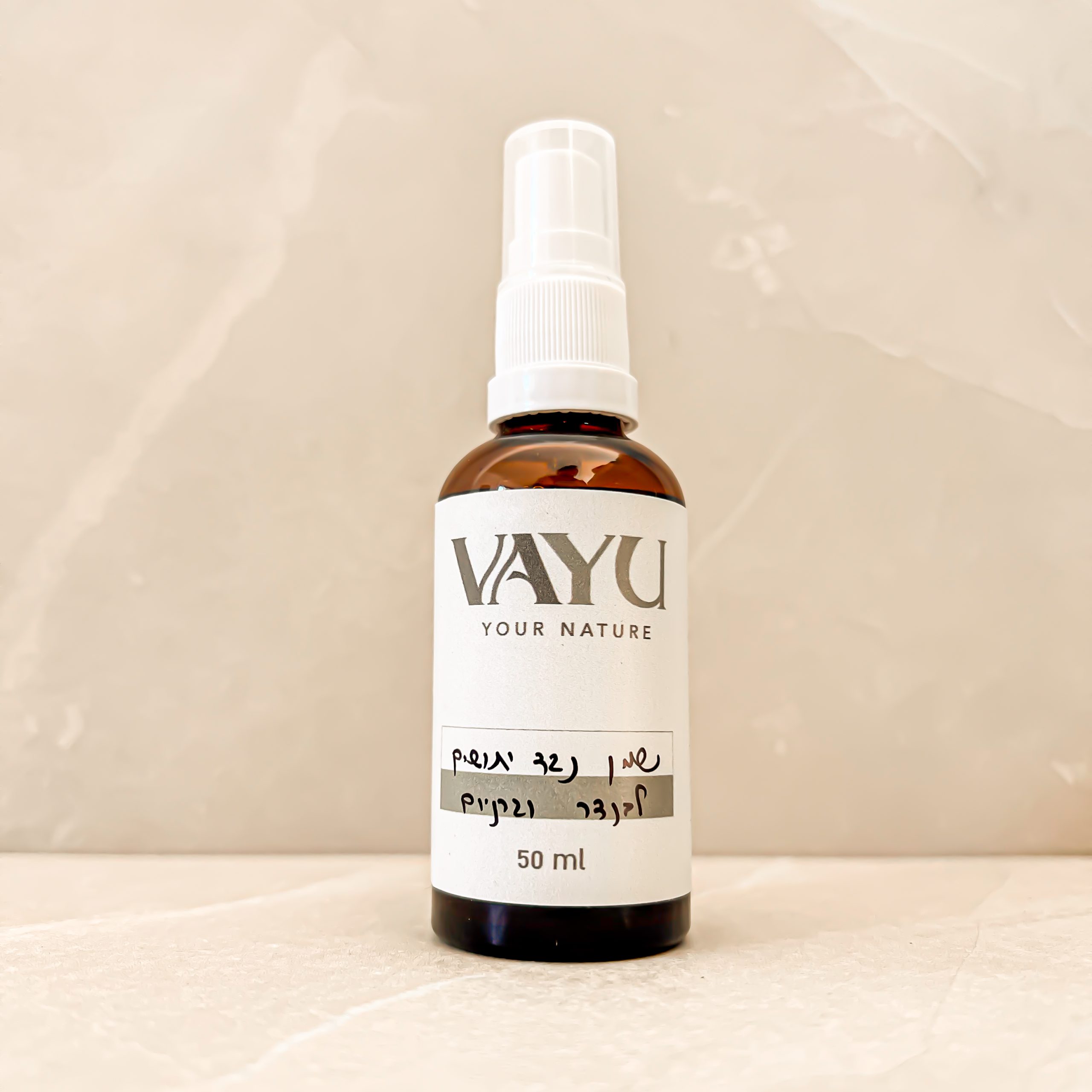 שמן על בסיס שמן שקדים אורגני בכבישה קרה בתוספת שמנים אתריים שמותרים לתינוקות.